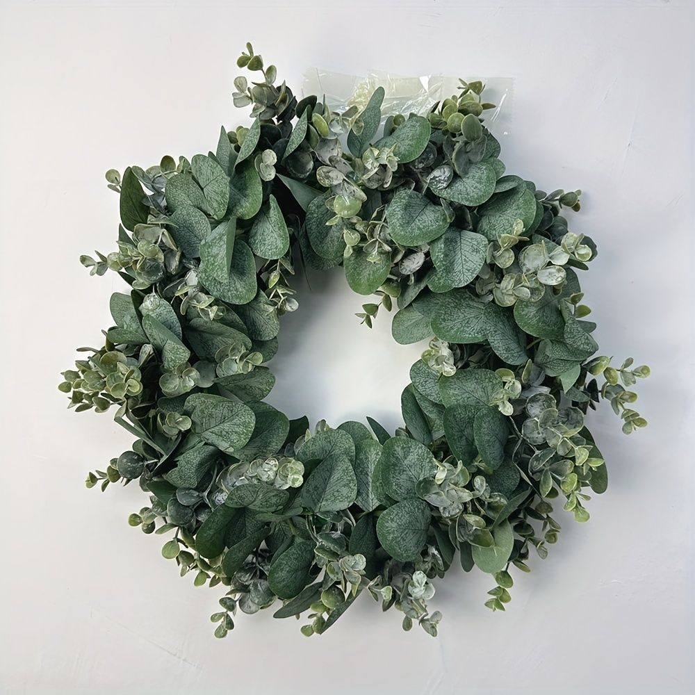 リース 1 pc 45.72 cm 人工ユーカリリース 玄関ドア用 緑の葉の壁用 フェイクユーカリポーチ 農家 パティオ ガーデンフェスティバル お祝い ウィンドウ パーティー ホームデコレーション グリーン675