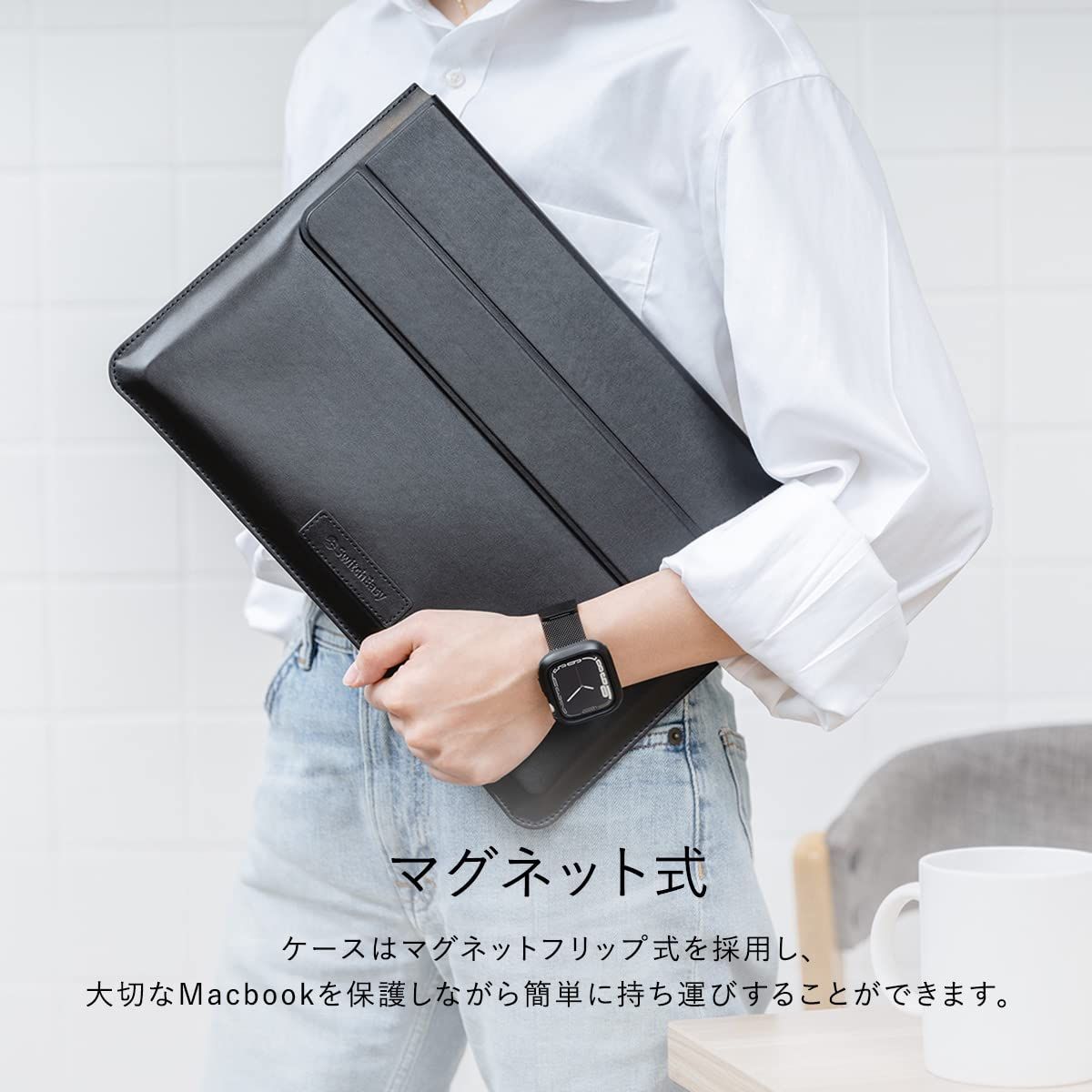 ケースはマグネットフリップ式を採用し、大切なMacbookを保護しながら簡単に持ち運びすることができます。