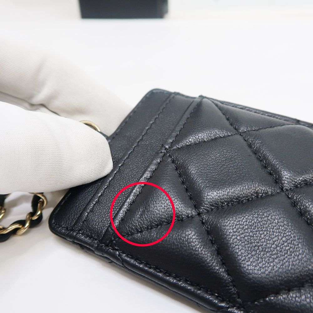 名東 シャネル ラムスキン AO 1745 GD金具 ココマーク チェーンストラップ カードケース レディース