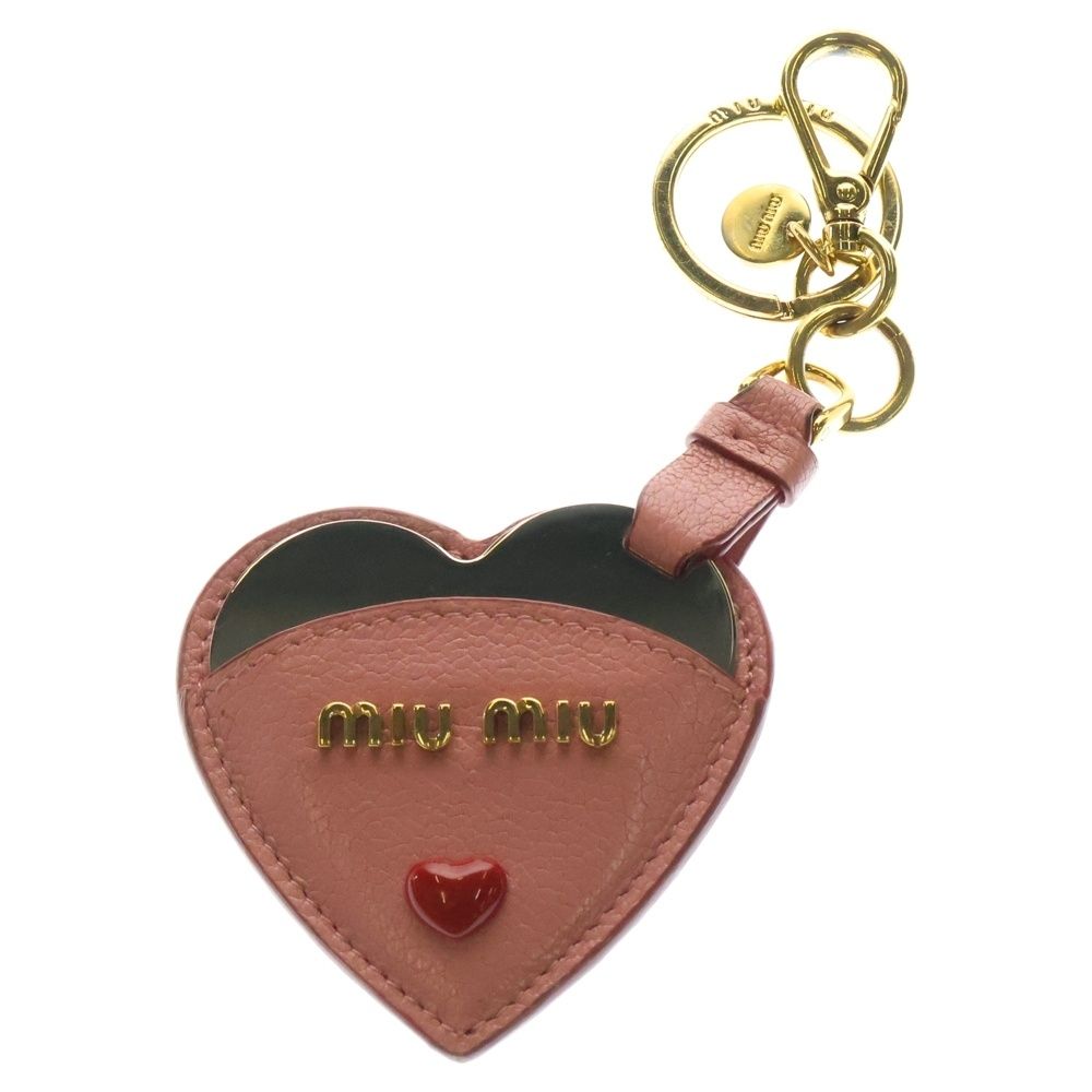 miumiu ミュウミュウ ハートモチーフ ミラー キーチャーム ピンク レザー 鏡