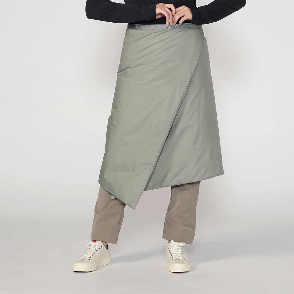 ミニマリズムをコンセプトにしながらも多機能で汎用性の高いインサレーションスカートです。表生地は耐久性と静音性に優れる滑らかなSwitch Woven製で、中綿にはPrimaLoft Black Insulation Ecoを使用しています。Switch Wovenは耐風性と耐水性も備え、PrimaLoft Black Insulation Ecoは60%がリサイクル繊維から作られ、さらに100%リサイクル可能な最高品質の化繊中綿です。一見シンプルなこの製品は、スキーツアーでシェルパンツの上に重ねたり、クライミングのビレイ中や、毎日の通勤時でも身体を暖かく保温してくれます。ラップアラウンド構造のため、フィット感の調整も着脱も簡単で、動きが妨げられることはありません。またワンサイズで家族全員にフィットし、広げればピクニック用のブランケットとしても、キャンプでは寝袋の上の掛け布団としても使用できます。山から街までシーンを選ばず、アイデア次第で様々な使い方ができる万能なラップスカートです。