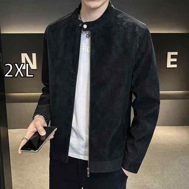 2 XL 秋冬 コーデ メンズ 服 シンプル ファッション オシャレ 大人 かっこいい 大きいサイズ ストリート 紳士服 スリム ジャケット スエード ライダース スタンド トップス