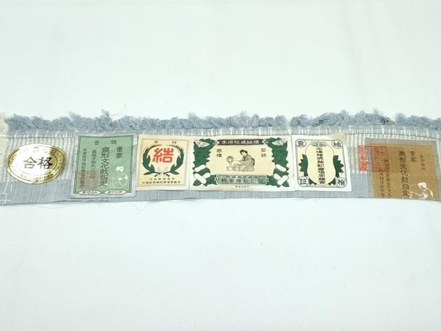上 本場結城紬 重要無形文化財 100亀甲 花丸文 チャイナクレイ色地 証紙付き s 5