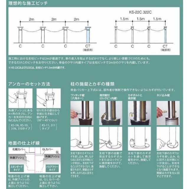 帝金バリカー KS 11 CT ステンレス製上下式バリカー76 3 mm クサリ内蔵型 端部 上下式車止め