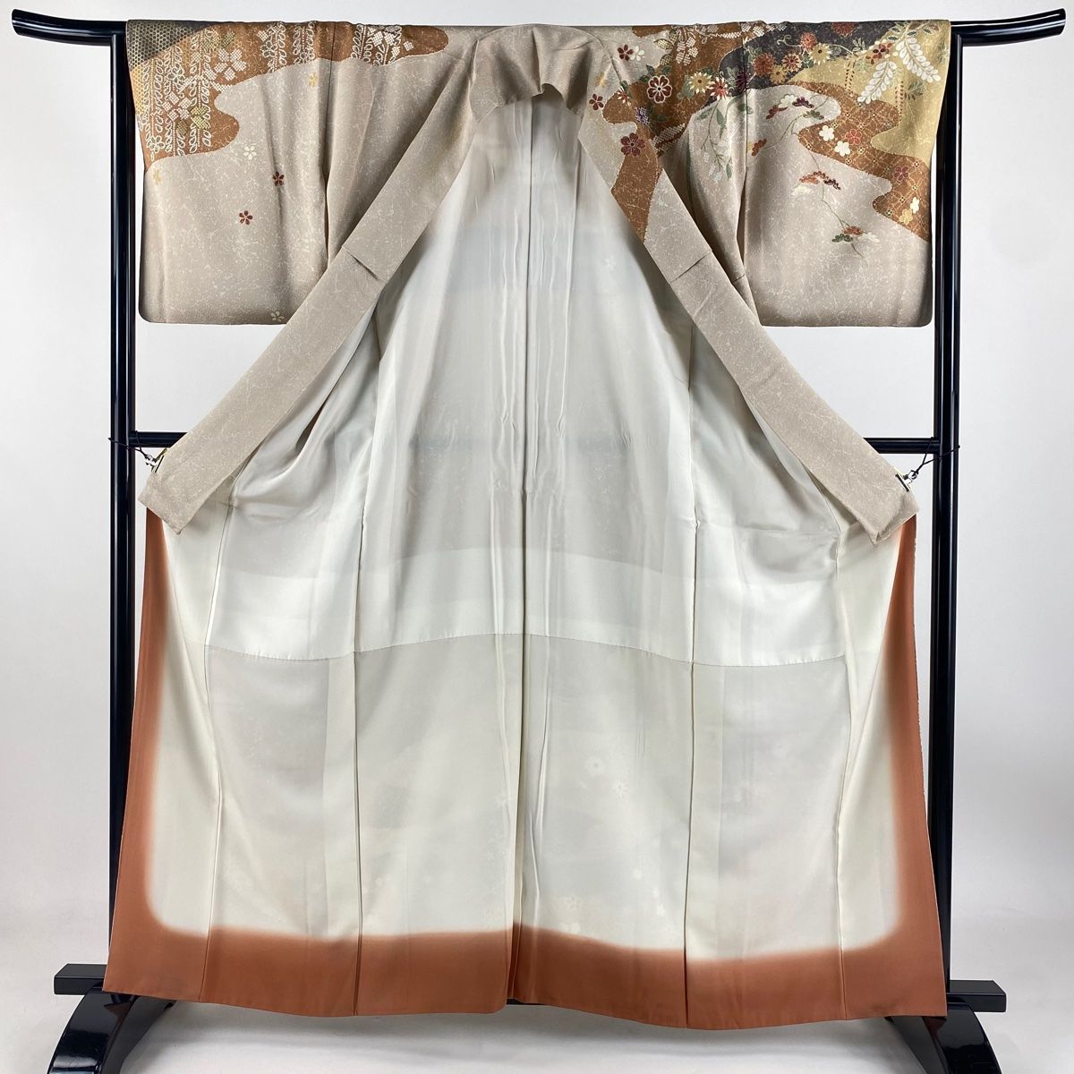 訪問着 身丈161 cm 裄丈64.5 M 袷 桜 松 金彩 ベージュ 正絹 秀品