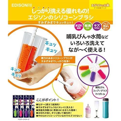 説明 しっかり洗える優れもの! エジソンのシリコーンブラシ 哺乳びんや水筒などいろいろ洗えてなが~く使える! (ポイント) ●なが~く使えて経済的! ●すみずみまでムラなくキレイに洗える! ●食器洗浄機OK! 煮沸OK! お手入れ簡単! ●水切れ良く、すぐに乾いて衛生的! ●やわらかシリコーンゴムブラシなのでキズつけない!