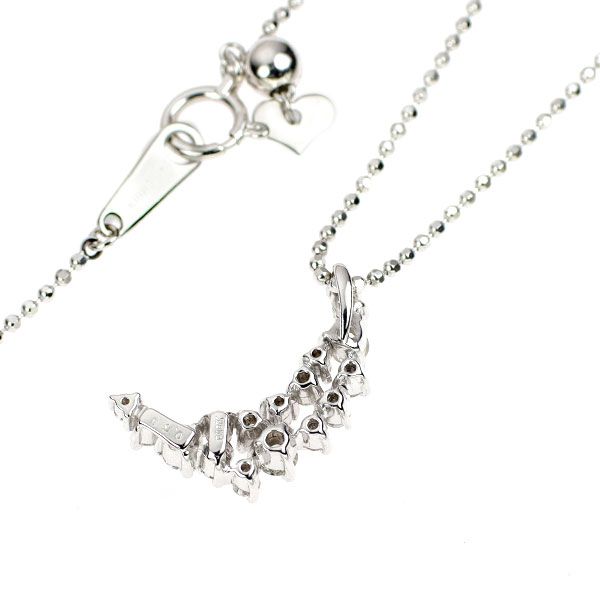 三日月を思わせるデザインが印象的な、ホワイトゴールドのペンダントネックレスです。