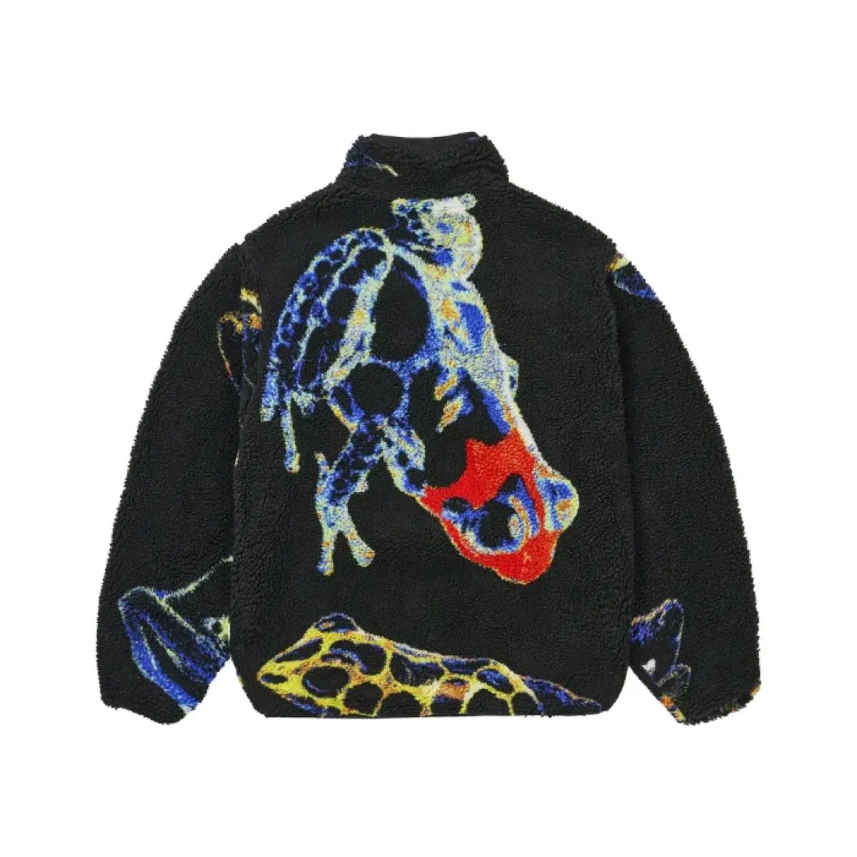 表面はブラックのフリース素材で、カエルの絵がポイントで入っています。リバーシブルなので裏返しての着用も可能です。