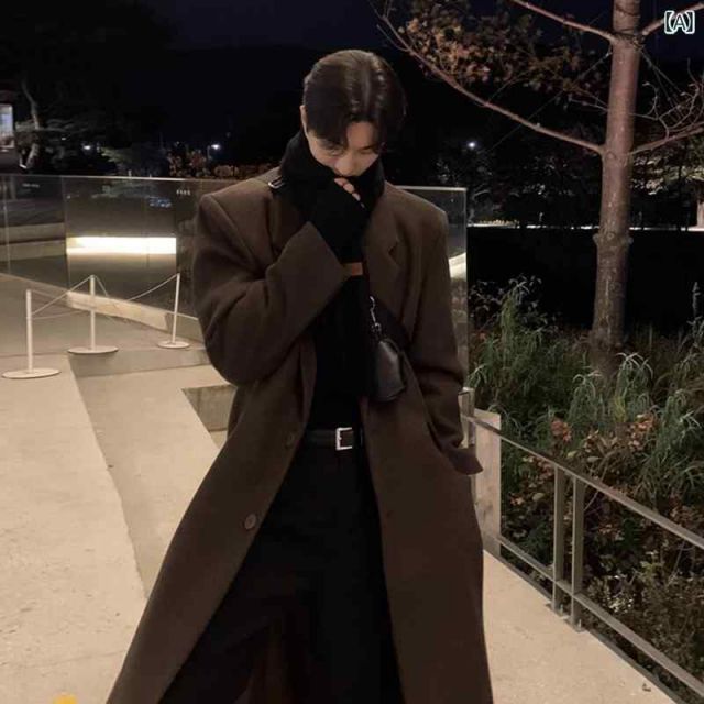 XL 秋冬 コーデ メンズ 服 シンプル ファッション オシャレ 大人 かっこいい 大きいサイズ ストリート 紳士服 肩パッド ミドル丈 ウール コート 韓国スタイル 冬 アウター ジャケット