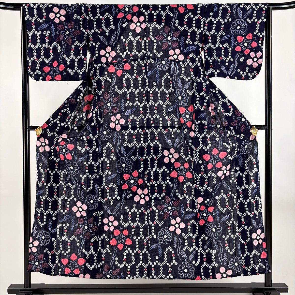 浴衣 身丈153 cm 裄丈63 S 絞り浴衣 花 亀甲 濃紺 綿