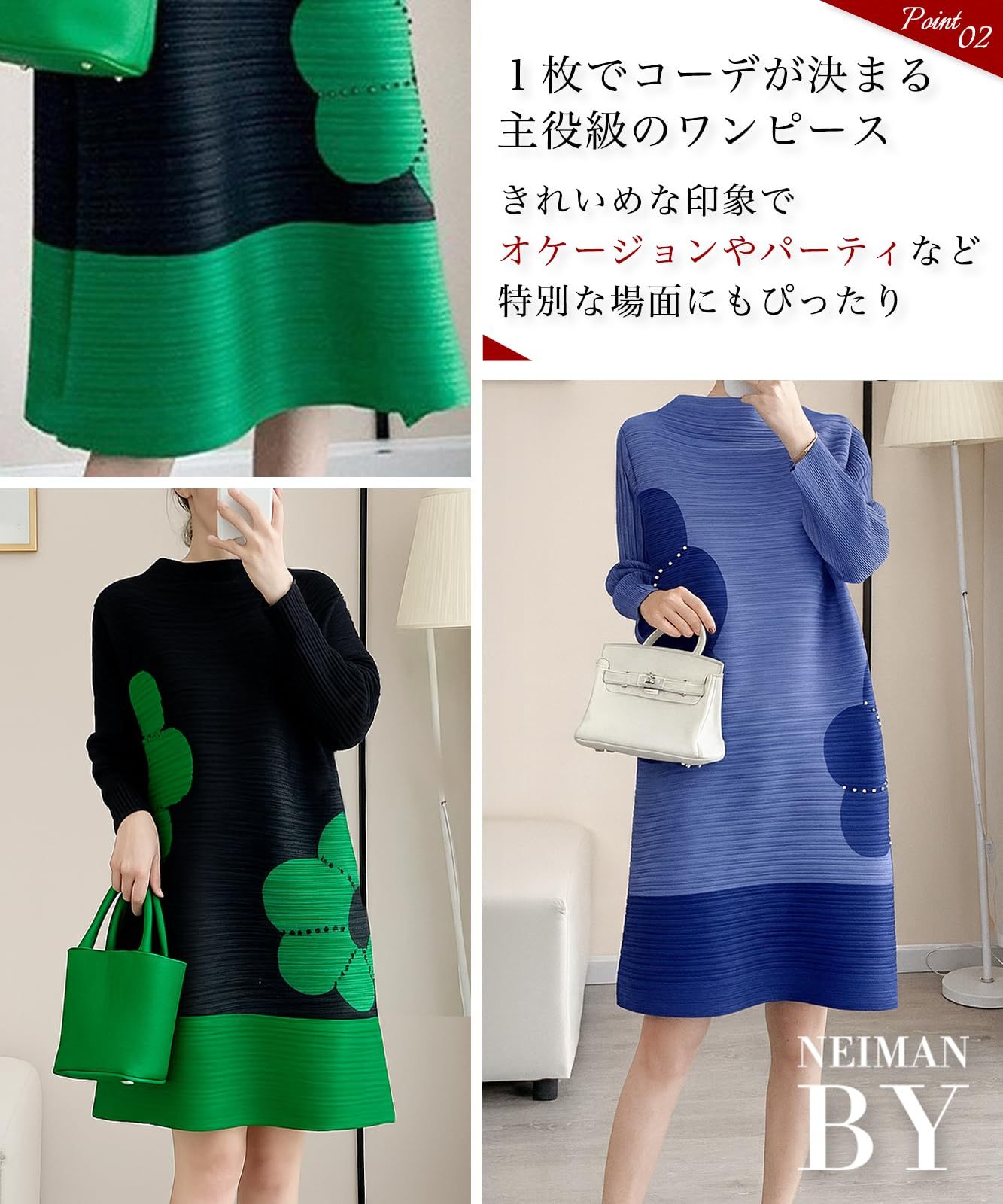[ニーマンバイ] ワンピース きれいめ 花柄 ストレッチ オケージョン プリーツ ワンピ 春物 2xl 大きい サイズ 大きいサイズ キレイメ 大人 マタニティ 発表会 衣装 卒業式 30代 40代 50代 60代 シニア オシャレ おしゃれ レトロ カジュア