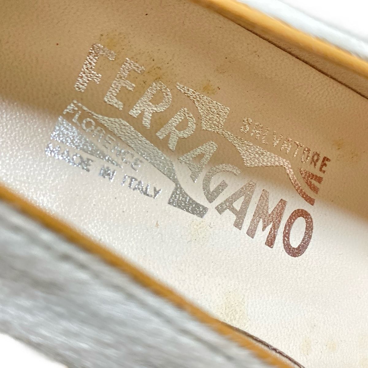 SalvatoreFerragamo サルバトーレフェラガモ フラットシューズ 7 B レディース - 白×ライトブラウン レザー