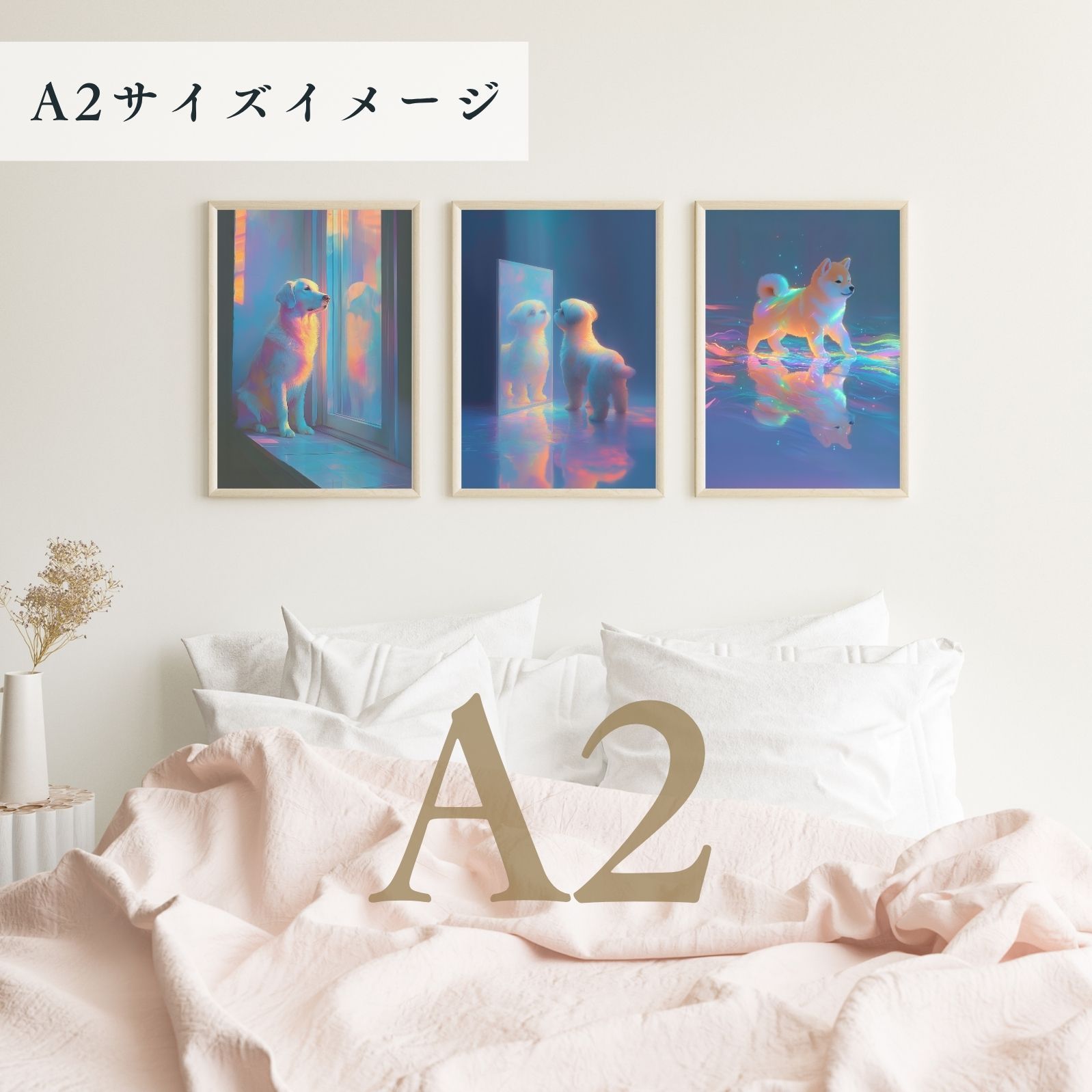 小さすぎず大きすぎない、A2ポスターサイズ(420 × 594mm)の高画質・高品質のドッグアートプリント絵画です。