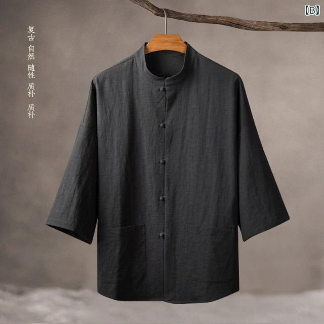 M 秋冬 コーデ メンズ 服 シンプル ファッション オシャレ 大人 かっこいい 大きいサイズ ストリート 紳士服 軽 通気 リネンシャツ 半袖 スタンドカラー 七分袖 シャツ 綿 リネン トップス