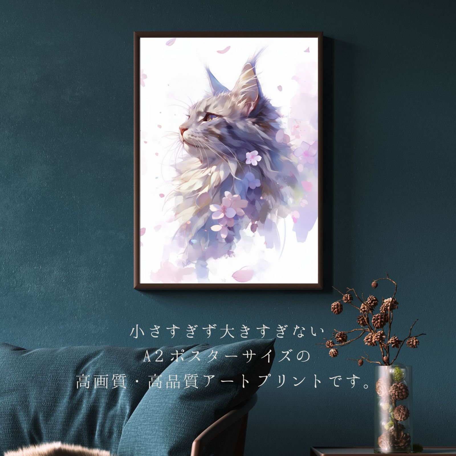 美しくかわいい猫ちゃん達のアートポスターを玄関やリビング、ダイニングや寝室に一枚飾るだけで、幸せな空間が一気に広がります。