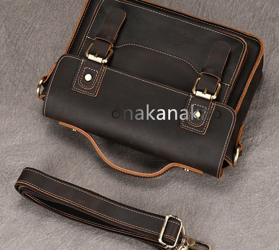 推薦 メンズレザーショルダーバッグ 本革 メンズ 鞄ハンドバッグ ハンドバッグ ヌメ革 ビジネスバッグ ダークブラウン