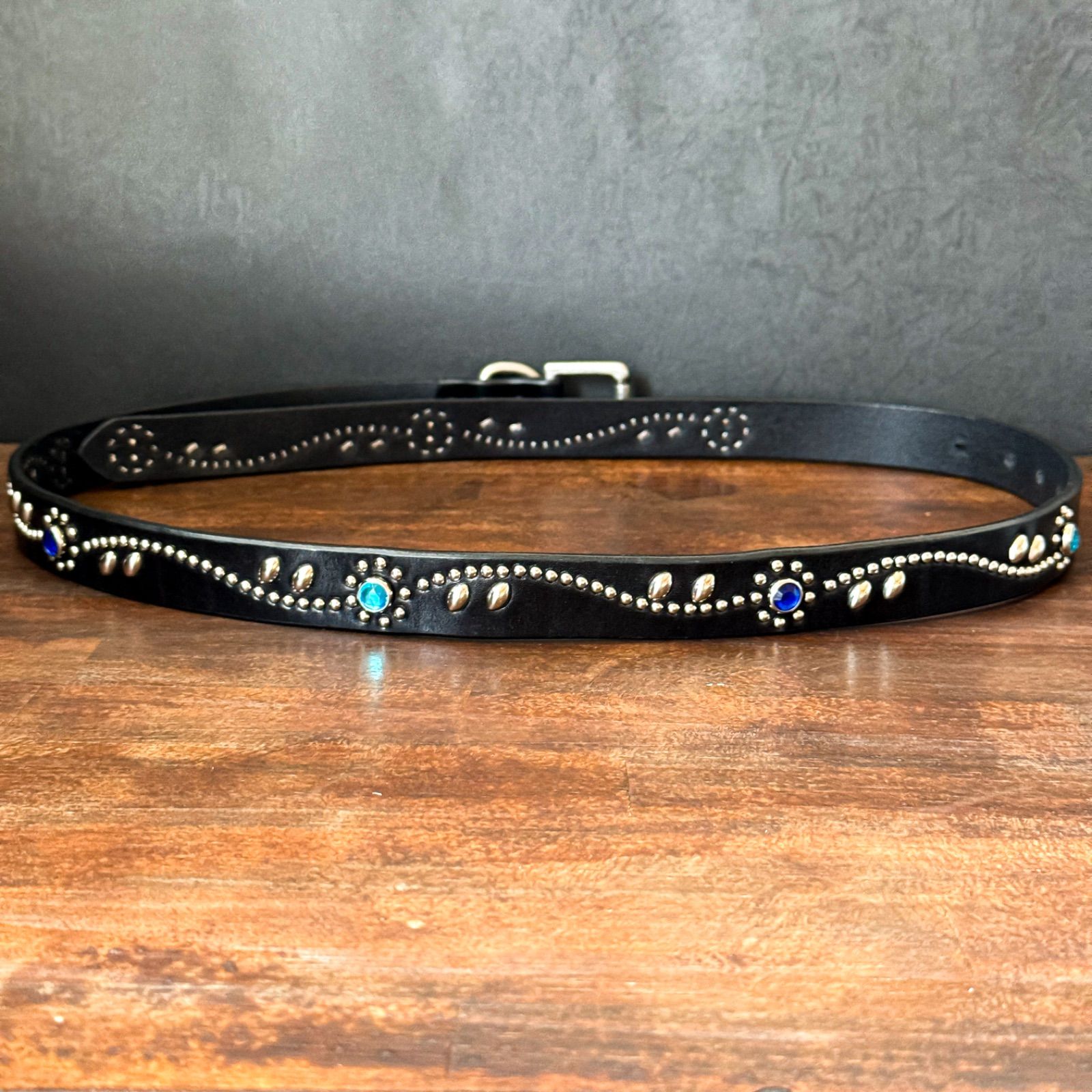 ▪︎HTC.RRL.CALEE等にも使用されるスタンダードリベット社の高級スタッズとナローベルト用にタンナーより取り寄せた厚手のカウレザーを使用して製作したハンドメイドのベルトになります。
