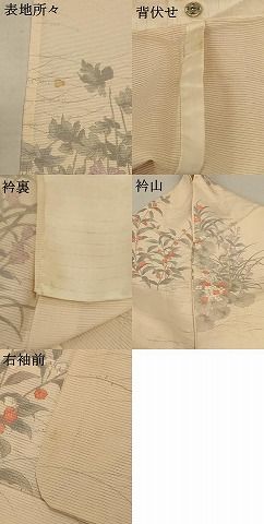 平和屋着物 夏物 小紋 絽 手描き 草花文 正絹 jd