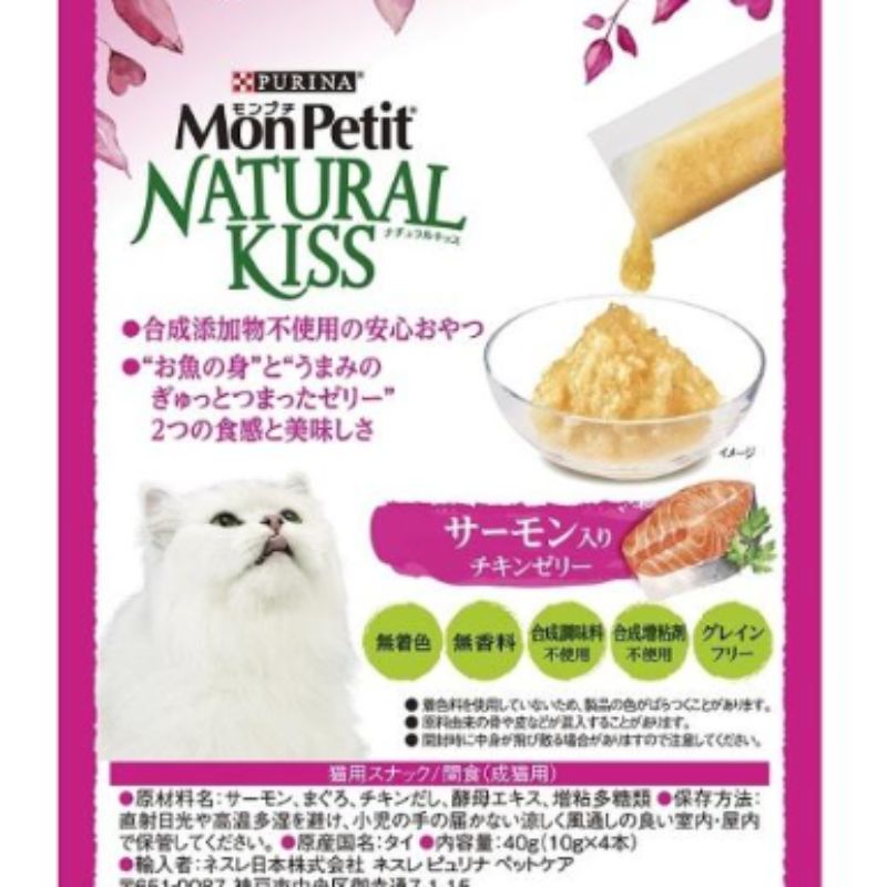 ネスレピュリナ モンプチ ナチュラルキッス サーモン入りチキンゼリー 10 g×4本入×30袋セット ネスレ 水分補給 キャットフード ウェットフード 多頭飼い パウチ 子猫 成猫 高齢猫 シニア猫