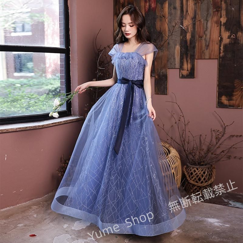 ♥ カラードレス カクテルドレス ロングドレス パーティードレス 発表会 演奏会 ステージドレス イブニングドレス 大人 ブルー 青 ウェディングドレス nhdw 125