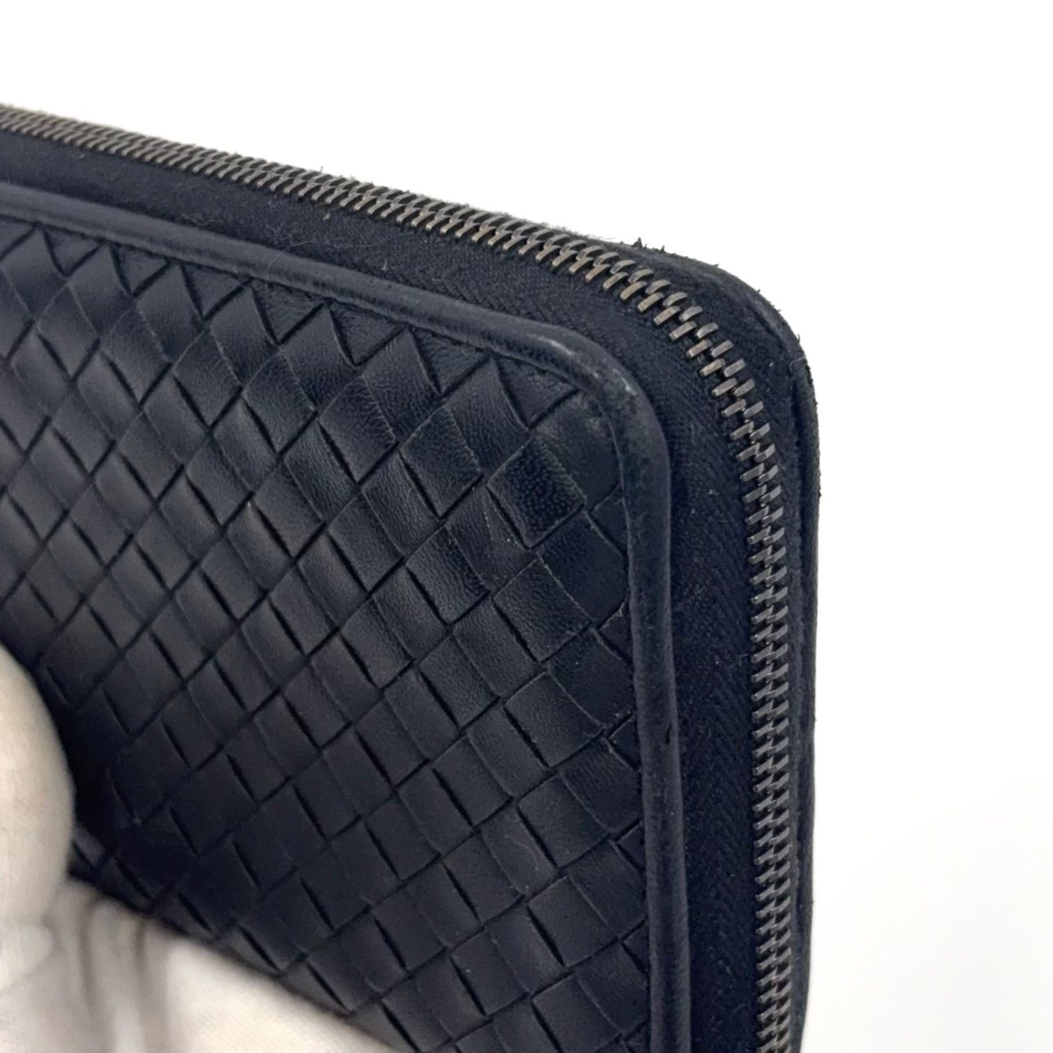 BOTTEGA VENETA イントレチャート ラウンドファスナー ジップ レザー ブラック 財布