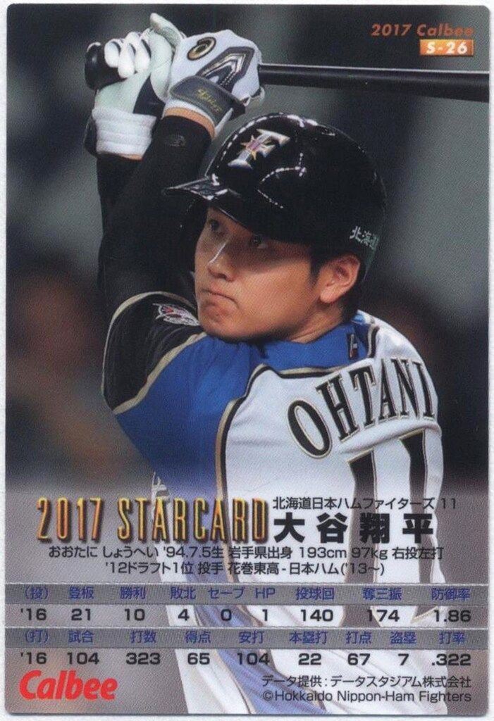 カルビー 2017年 第2弾 日本ハムファイターズ 大谷翔平 STAR CARD 赤箔サイン S-26
