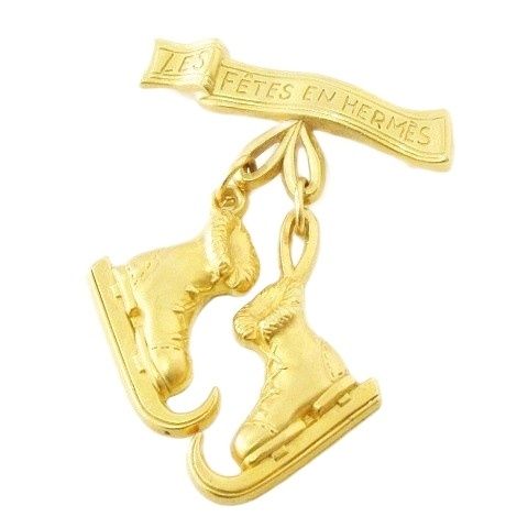 エルメス HERMES スケートシューズ ブローチ スケート靴 モチーフ ゴールドカラー AA