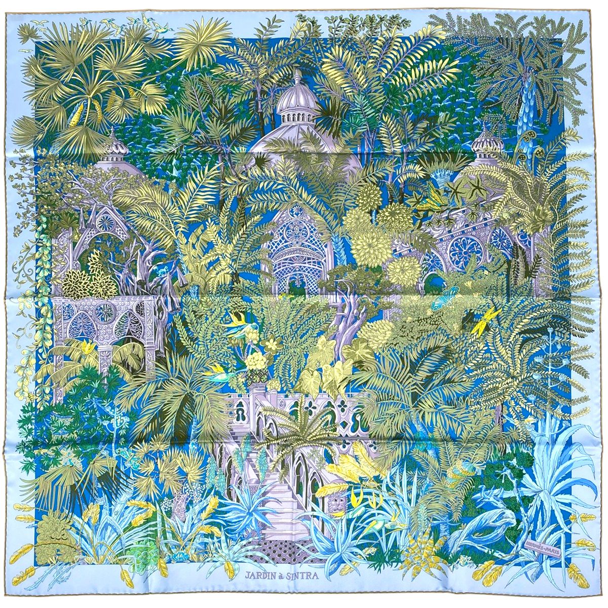 エルメス HERMES カレ 90 JARDIN A SHINTRA シントラの庭 スカーフ シルク ブルー レディース