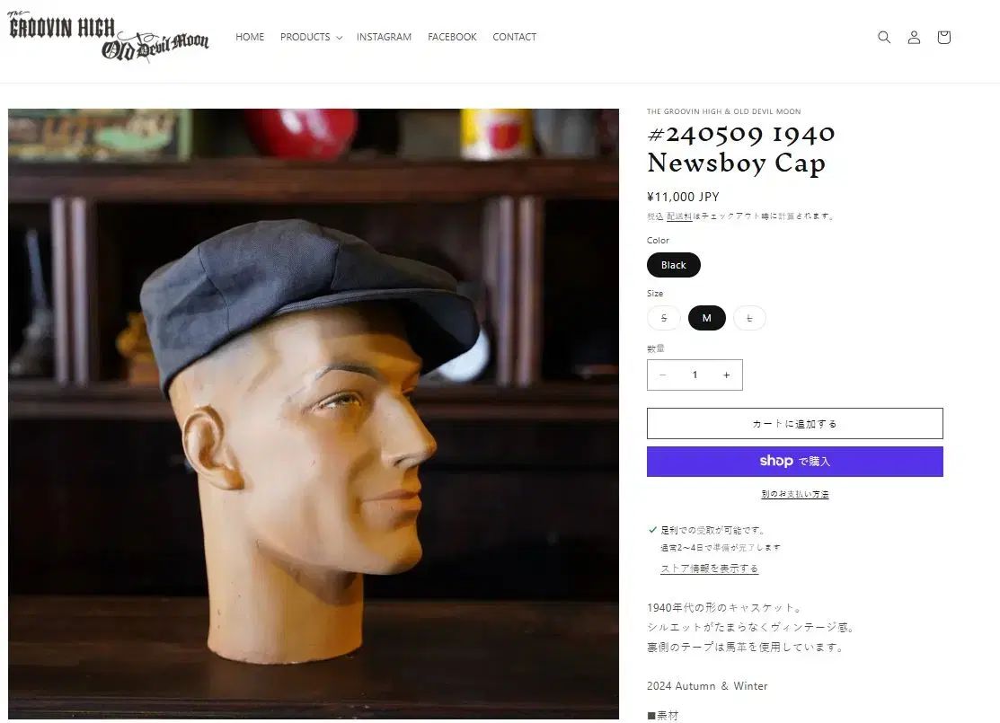 グルービンハイ 1940 ニュースBOYキャップ
