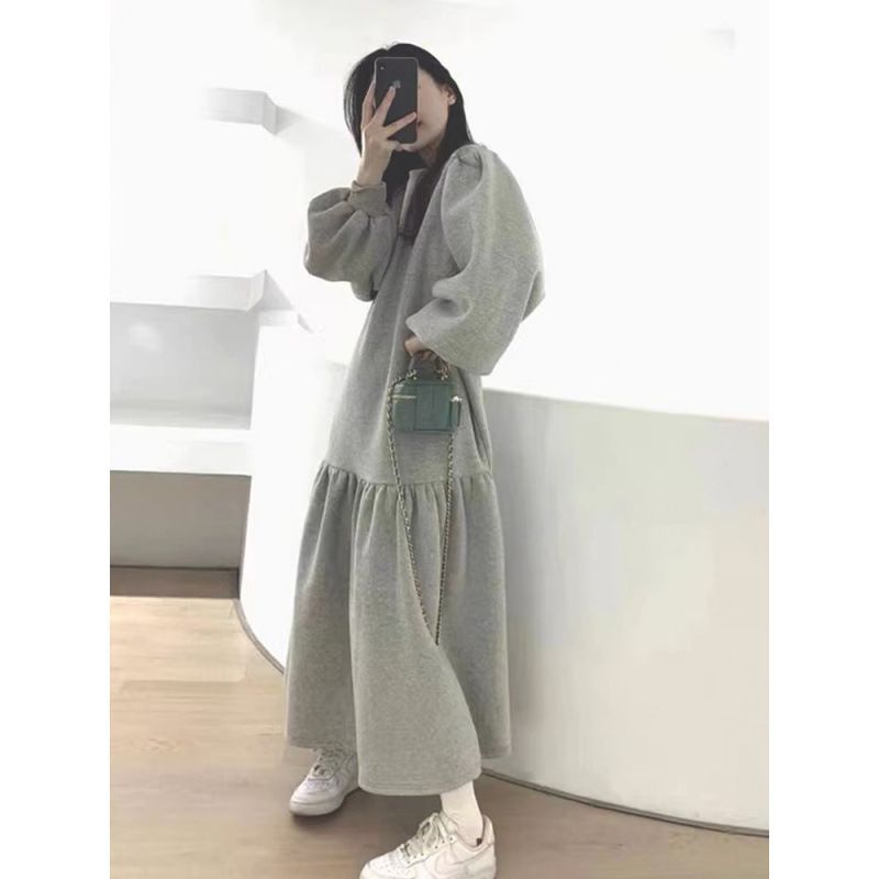 ワンピース レディース ロングワンピース ロング丈 ボリューム袖 秋冬 体型カバー ゆったり 着痩せ 通勤 通学 OL ビジネス シンプル おしゃれ 柔らかい 肌着 20代 30代 40代xkmily 118 DZ 20