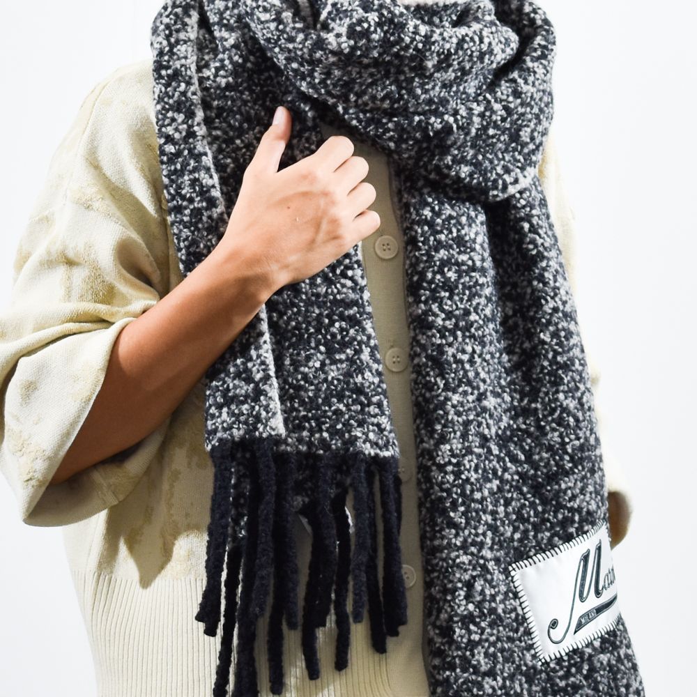 両端にはフリンジが施され、アイコニックなマルニロゴ入りラベル付き。