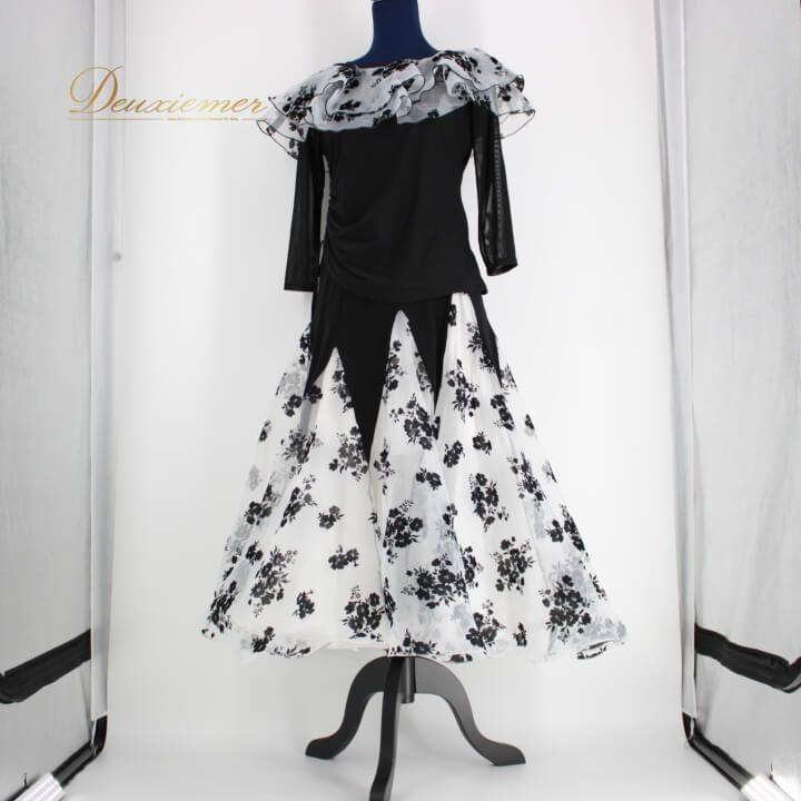#社交ダンス #ダンス衣装 #レディースファッション #トップス #スカート #伸縮性 #花柄 #シック #ブラックホワイト #ファッションスタイル #ドレスコーデ #ダンスパフォーマンス #おしゃれ #セクシー #トルソー #ダンスウェア #レイリーナ #ラバティンカラー #衣装セットアップ #ウエストゴム #ENUTSU