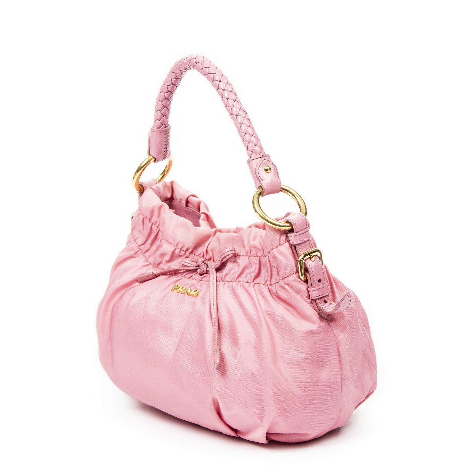 PRADA プラダボウブレイデッドバケットピンクナイロンキャンバスA
