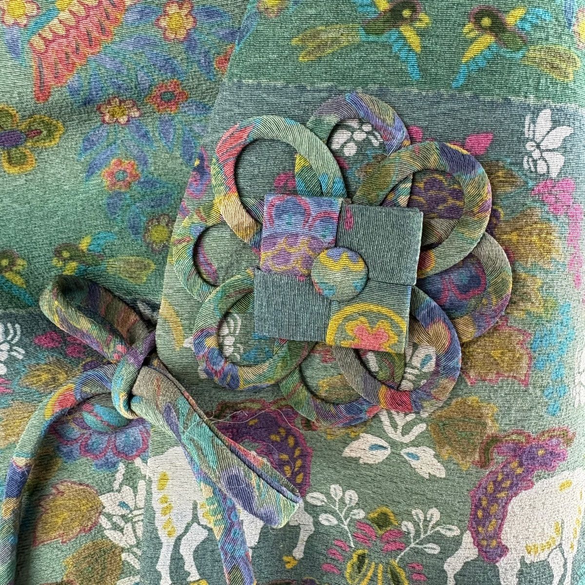 道中着 身丈91 cm 裄丈63 S 和装コート 動物 草花 ぼかし 緑 正絹 秀品