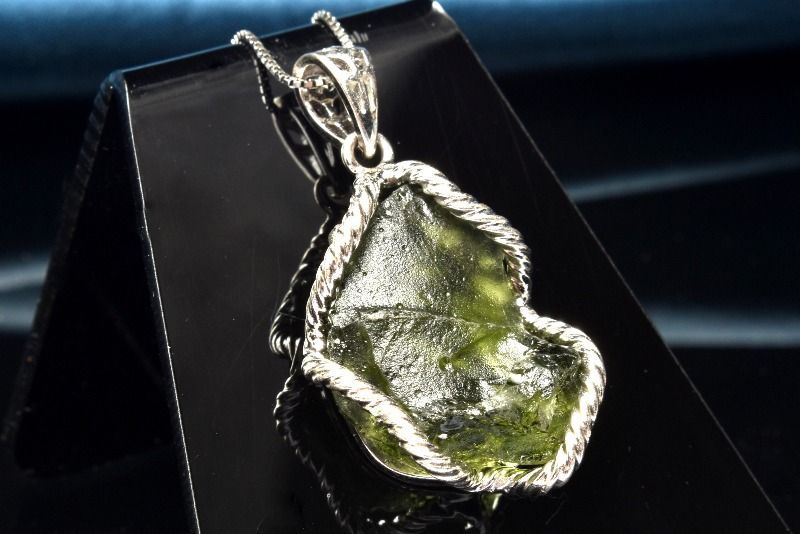 1点物 AA シルバー925 モルダバイト 20 x 14 mm 原石 ペンダントトップ パワーストーン 天然石 _PC 6481