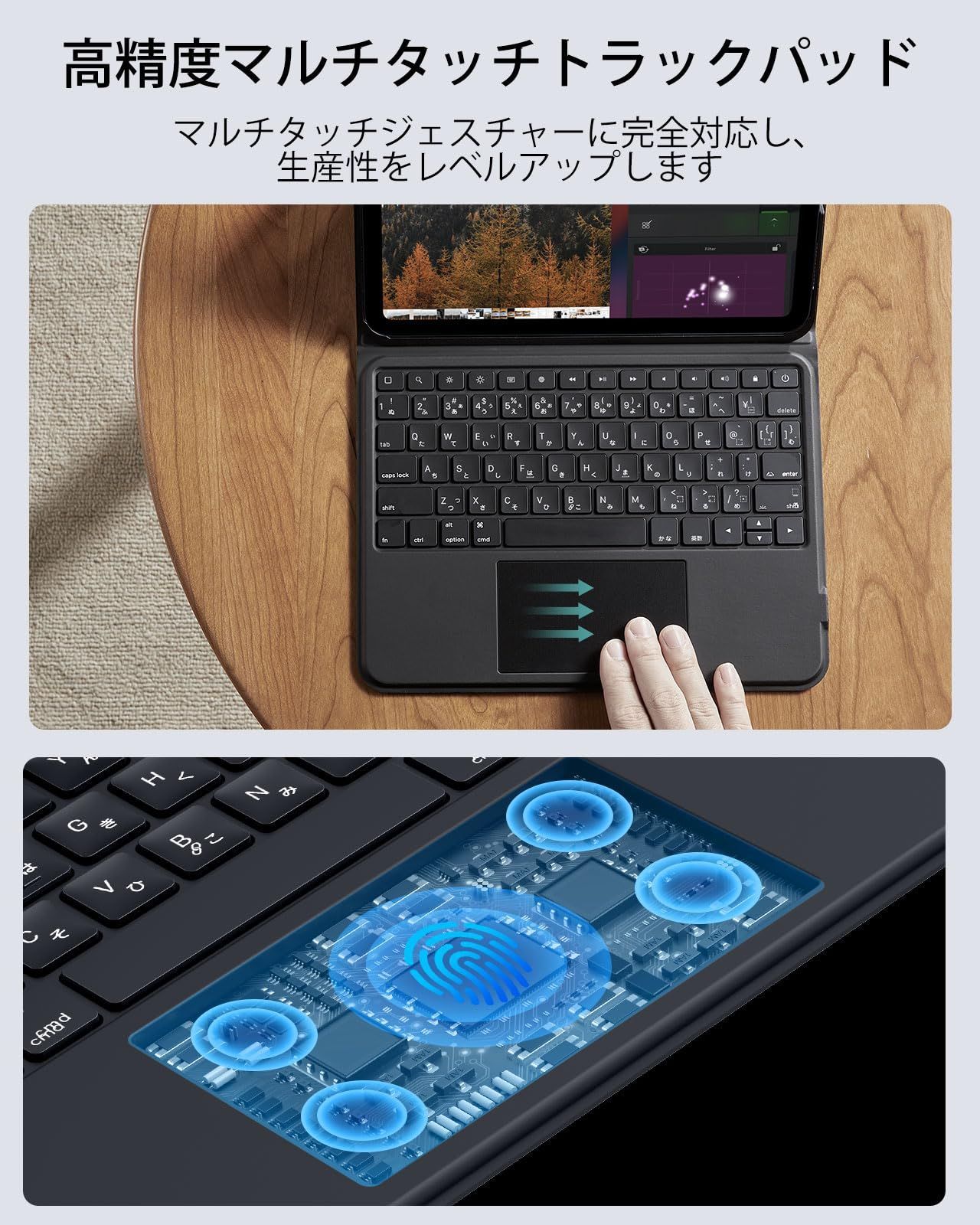【縦向きと横向き表示】: 縦向きモードと横向きモードを簡単に切り替えて、ドキュメントの編集、閲覧、FaceTime、ビデオの視聴ができます。
