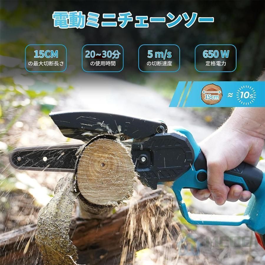 【ブラシレスモーター】 他のチェーンソーとは異なり、当社の6インチ充電式ミニチェーンソーはブラシレスモーター設計を採用しており、より強力で長寿命、より速い冷却、より高い効率を実現しています。切削効率は木材の体積と硬度によって異なります