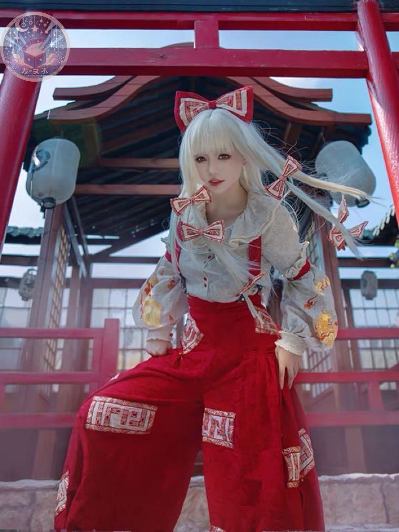 森森仙コスプレ東方Project コスプレ藤原妹紅 コスプレ衣装 ウィッグ コスチューム 仮装 イベント衣装 コスプレセット 高品質コスプレ 再現度高め