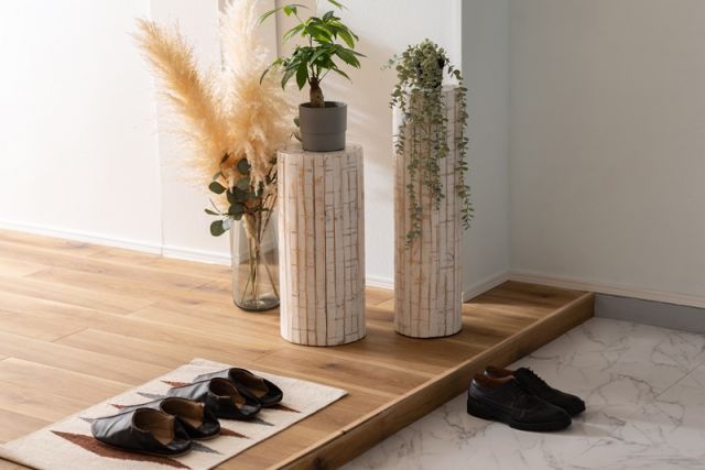 ひとつひとつ表情の違う丸太型のグリーンベース。ホワイトカラーのナチュラルな雰囲気がグリーンを際立たせます。