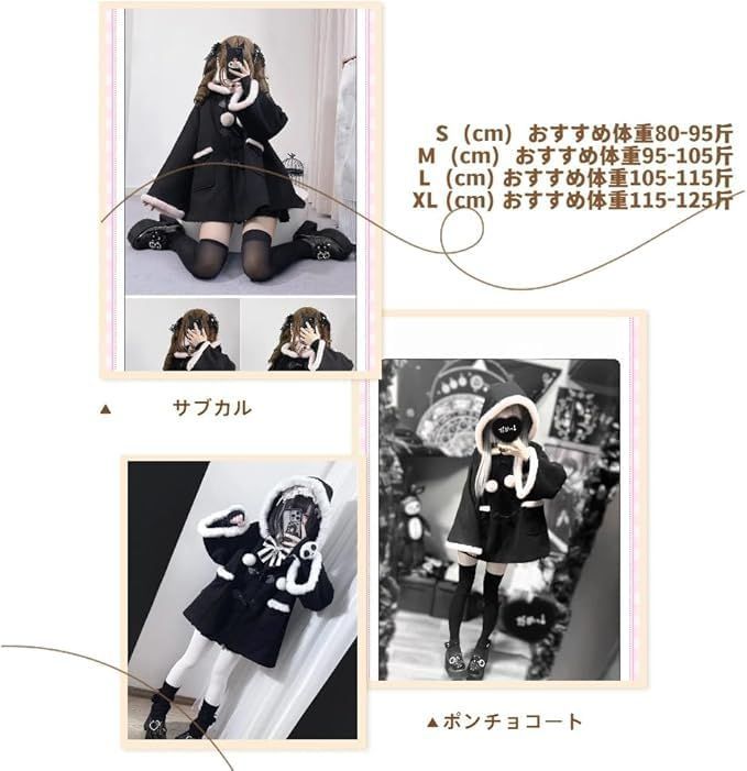 優れた生地を採用し、厚手で保温性がよく、秋冬の寒さを防ぐことができます。フードのデザインにモコモコの装飾を組み合わせることで、保温効果を高めただけでなく、かわいい雰囲気をプラスし、牛角ボタンの要素は実用的なボタンを結ぶと同時に、全体の造形にレトロさと垢抜け感を注入します マントコートはサブカルと日常の着こなしのエッセンスを融合させ、ロリータ、ゴシックなどのサブカルスタイルに完璧にフィットし、愛好家のために独特の造形を作ることができる。日常の街やキャンパスなどのシーンに気軽に溶け込むことができ、サブカル愛好家や個性を求める人が乗りこなすファッションです もこもこの帽子の縁、袖口、かわいい毛玉の装飾は、細工が細かく、質感がいっぱいで、一瞬にしてコートの精緻さを高めます。牛角ボタンの造形はレトロでシックで、視覚的な焦点となり、人の群れの中で簡単に選ばれ、細部に至るまで心がこもっている ゆったりとしたマントタイプはさまざまなスタイルに非常に友好的で、体形を選ばず、巧みにボディラインを修飾し、可愛くて自由な着こなしを作り出し、小柄でも背の高い体形でも、自分のスタイルと快適さを身につけることができます スタイリッシュでシンプルなデザインで、スカート、タイツなどに合わせることができ、靴はロリータ靴、マーティン靴、厚底靴などを選ぶことができ、さらに異なるヘアスタイル、髪飾りの装飾を加えることで、多様なスタイルを生み出し、豊富なコーディネート意欲を満たし、多様で目を引くスタイルを簡単に作ることができます 続きを見る この商品について
