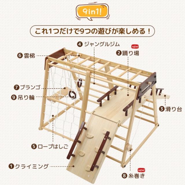 商品名:ジャングルジム 折り畳み収納 天然木 滑り台 ブランコ 大型遊具 木製 折りたたみ 多機能 室内 家庭用 3歳以上 クリスマス プレゼント誕生日 お祝い