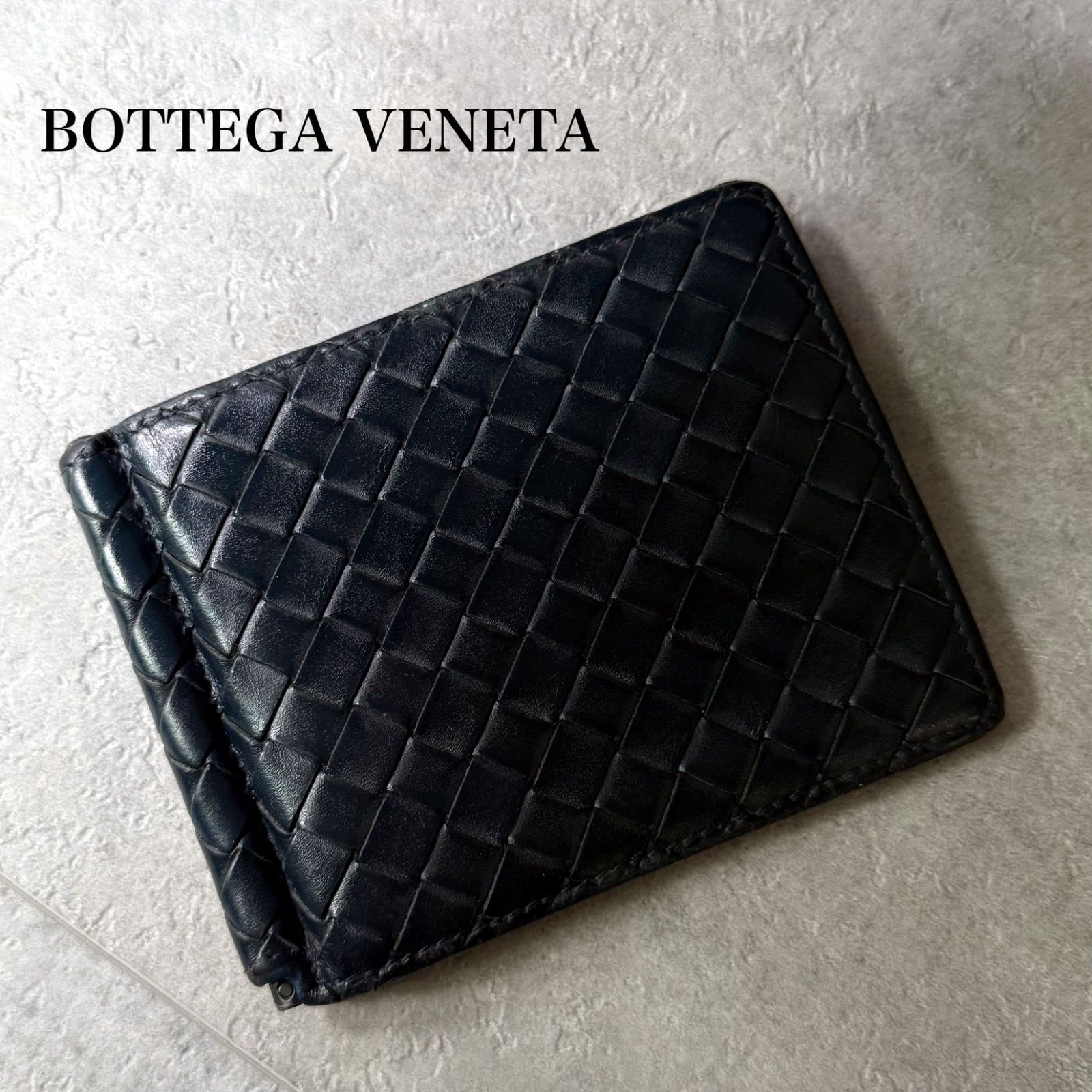 BOTTEGA VENETA ボッテガヴェネタ イントレチャート マネークリップ 二つ折り財布 カードケース カーフレザー ネイビー ブルー バイ ボッテガ
