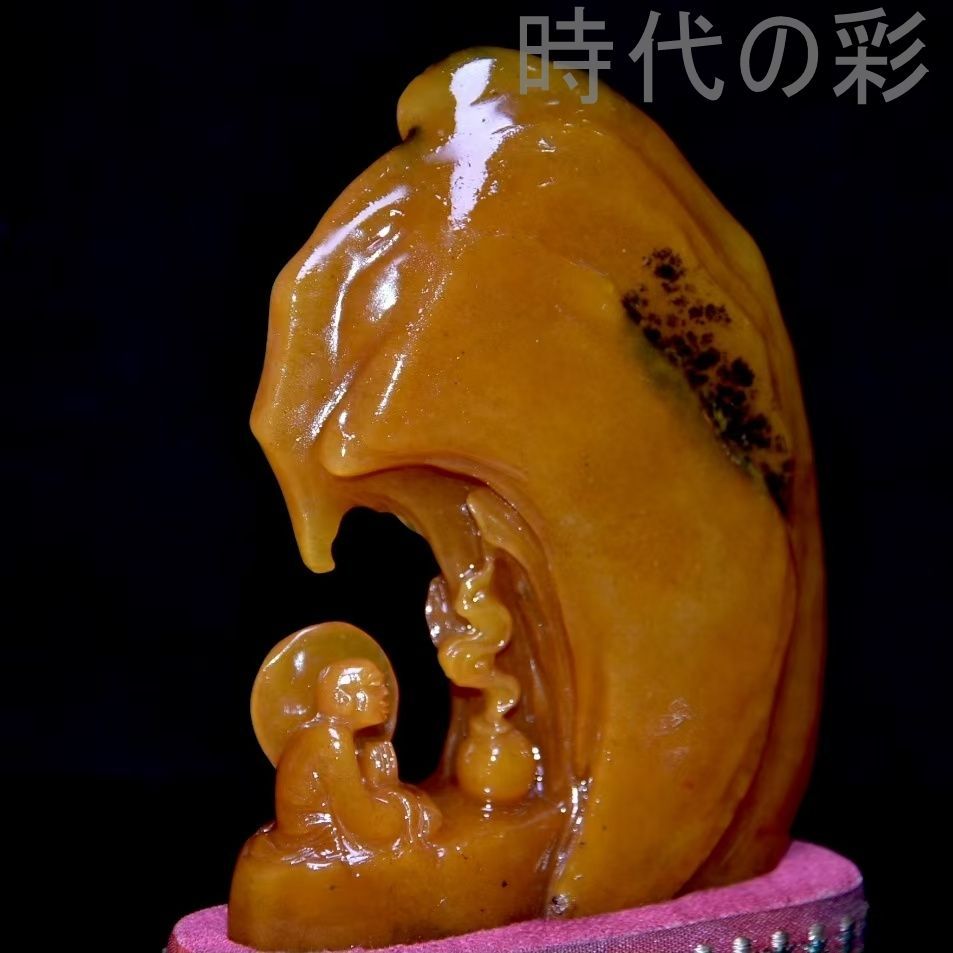 中国古美術 旧蔵寿山田黄石擺件。透明感ある結晶構造、職人による精細な彫刻。古雅な造形で保存良好、收藏に最適。