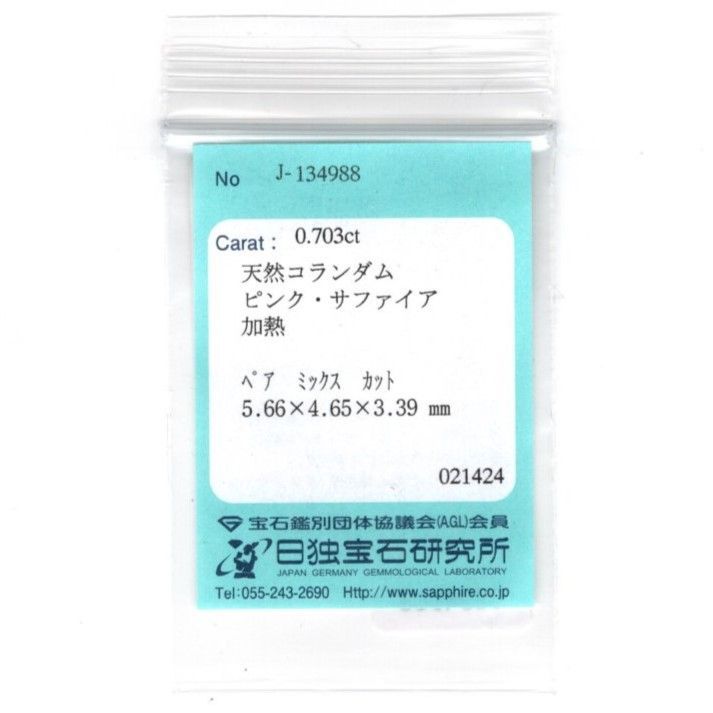 ピンクサファイア:0.703 ct
