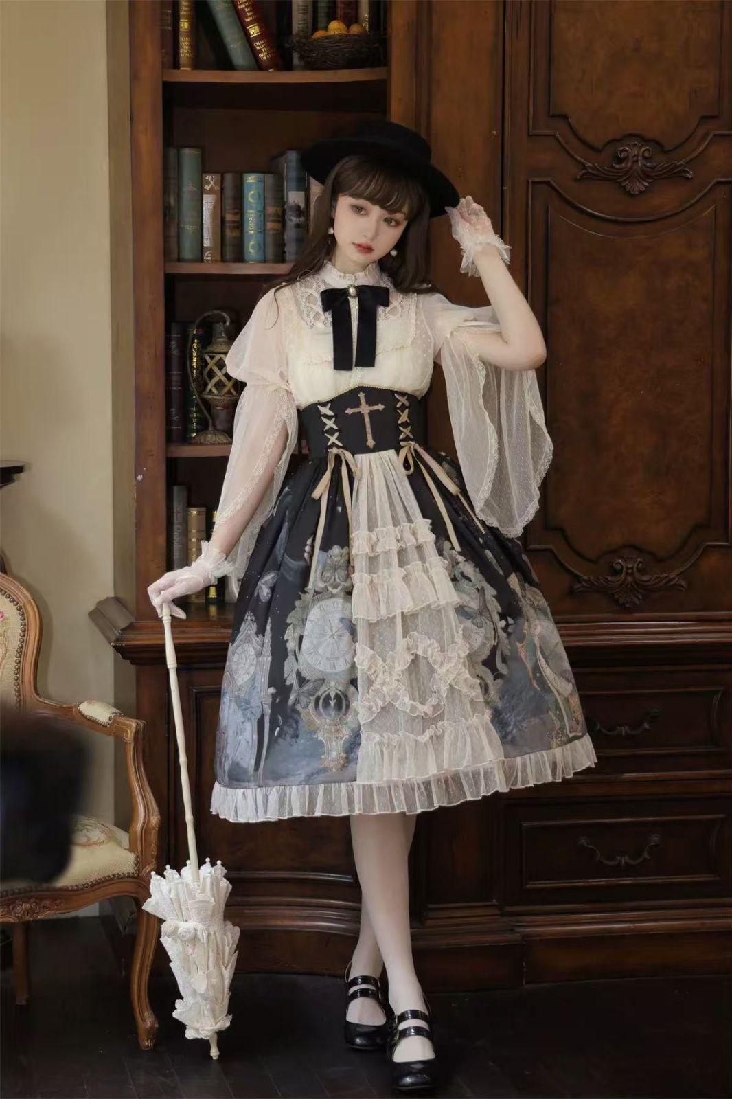 ロリータ 蝶の時計 ドレス シャツ キャミソール Lolita OP 長袖 通販 コスプレ衣装 ゴスロリ ゴシック メイド