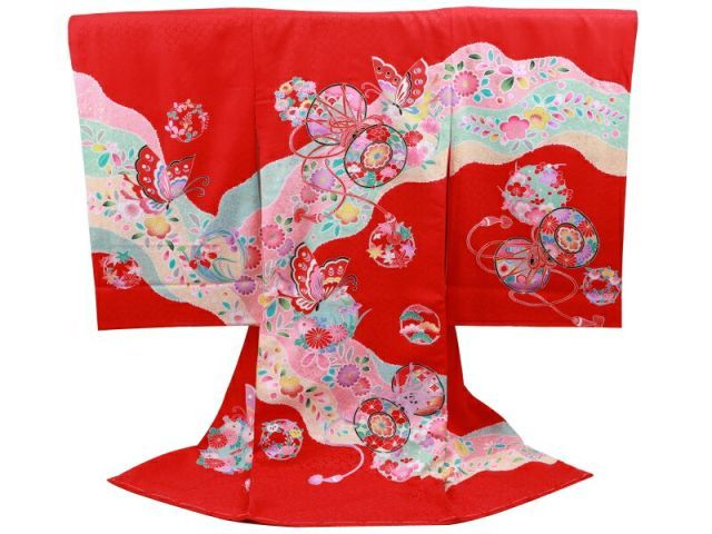 お宮参り 着物 正絹 長襦袢 セット 女児 女の子 子供 産着 祝着 金加工入り un-43 赤