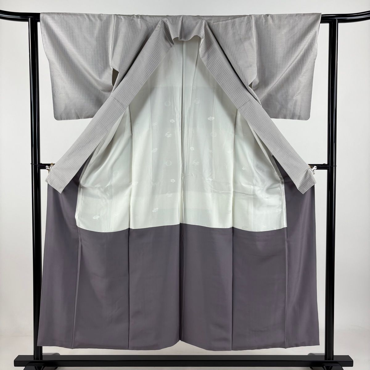 お召 身丈152.5 cm 裄丈60 S 袷 やまと 格子 灰紫 正絹