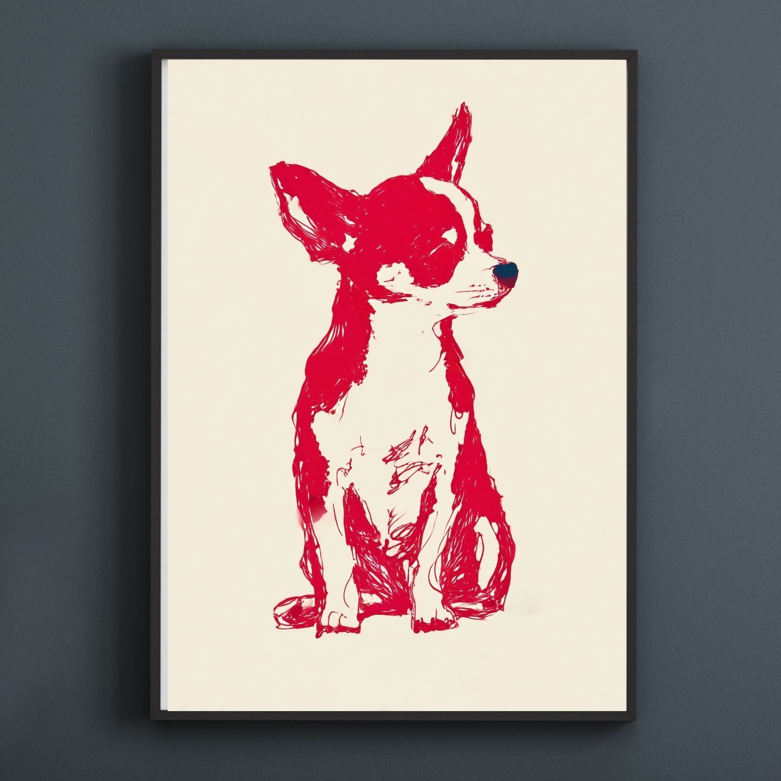 名入れOK Red Line - チワワ犬 No.3 アートポスター ペットロス 北欧モダン ミニマルインテリア カフェスタイル