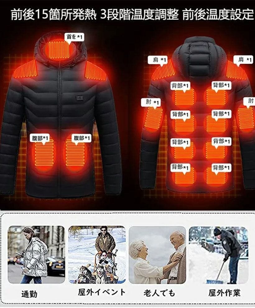 電熱ジャケット3段温度調整バッテリー給電 ヒーター付き作業服 防寒着メンズ レディース 電熱ベスト ヒータージャケット 電熱ウェア中綿コート冷え取り 作業着 電熱ベスト長袖 夜釣り ロアシシー発熱服ヒーターベスト長袖 洗える 電熱ジャケット バッテリー 1