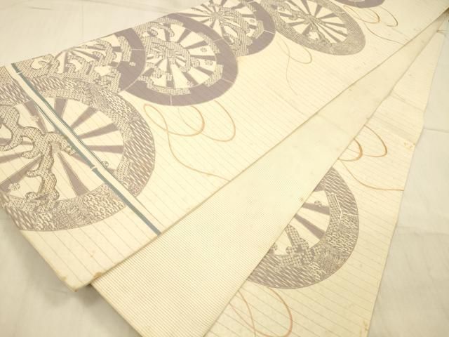 平和屋着物 夏物 アンティーク 大正ロマン 全通柄袋帯 流水鹿の子車文 正絹 cm